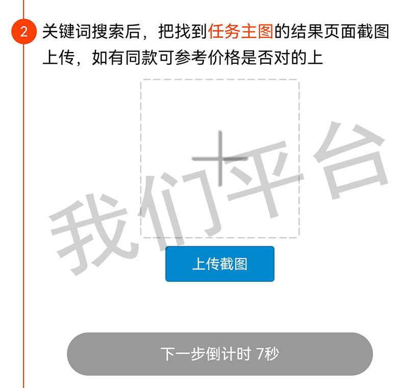 1、搜索任务会要求买家截图关键词搜索结果凭证(商家勾选了不要截图的不要求),可以证实买家用你要求的词搜了你的产品,防止从其他方式进店。而且每一步都有几分钟的倒计时,防止买家图快敷衍做任务。